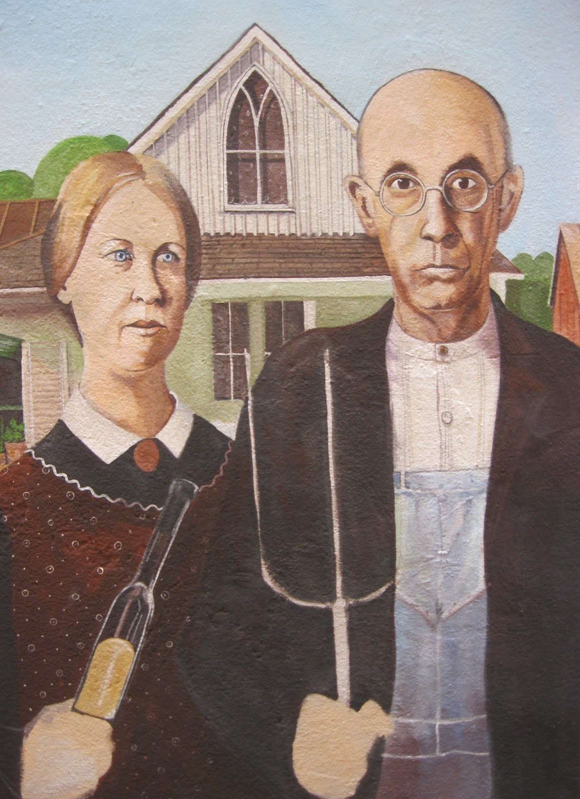 Each succeeding month participants are summoned (an email reminder) to take up the challenge. February's subject of interest was Grant Wood's iconic masterpiece American Gothic.